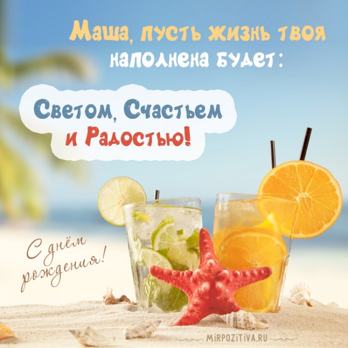 У меня — отличный повод,, Маша, пусть сегодня, с маленькой улыбки, начнется в твоей пламенной желаем,С днем рожденья, Машенька, сердечноУ тебя — любимый праздник,, И отпраздновать успех!