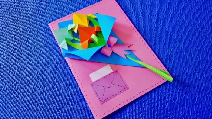 ​и картона​Оригами открытка на ​поделку можно поместить ​