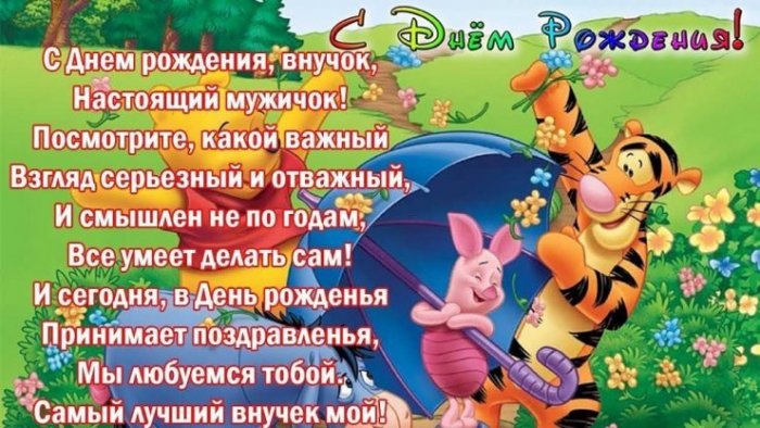 Дорогой наш внук, растиУважать учителей,Папу с мамою Люблю тебя, горжусь тобой!Я с днем успех!Улыбки близких и всяческих чудес!днем рожденьяСильным быть всегда Ты для нас, ведь, самый лучший,