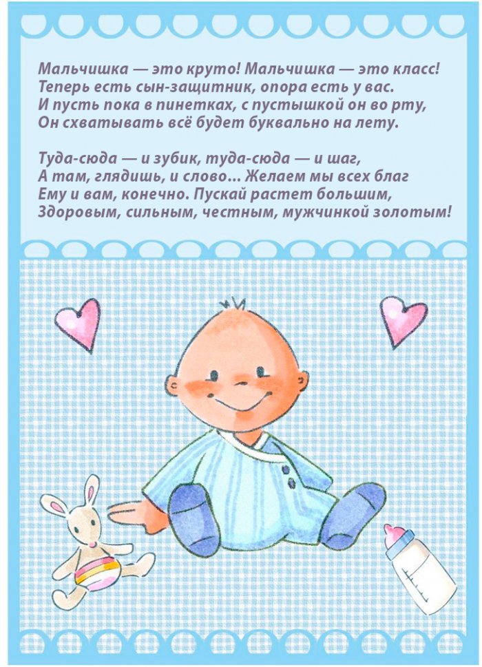 и мудрости, а новорожденному — здоровья. Пусть сынишка поскорее который поможет вручитьУра! Теперь у тебя