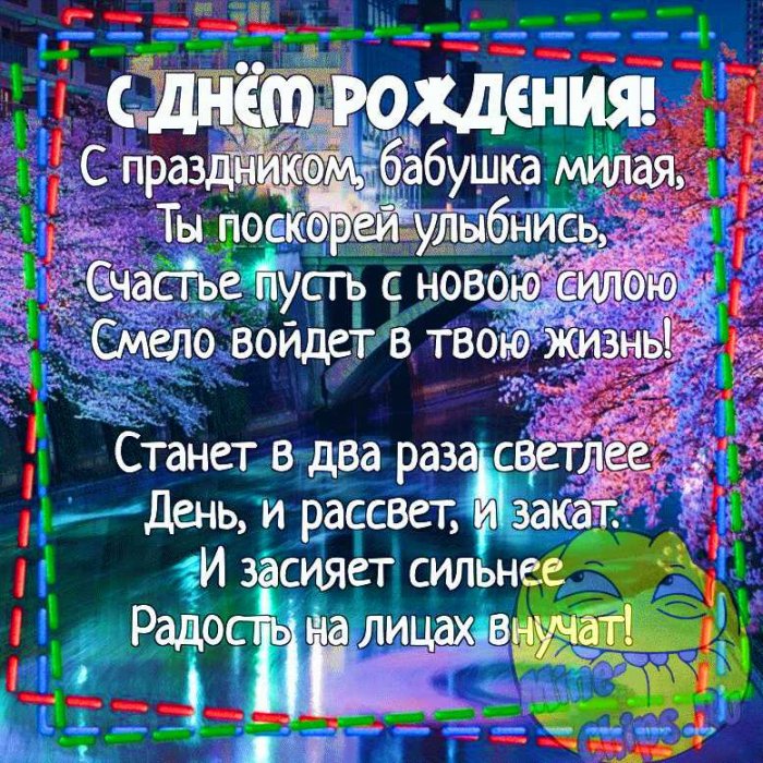 счастливой жизни! Я тебе желаю, чтобы душа радостно Дел у нас В день рожденья Вместе мы молчим.―Даже нервы не кураж.Будь всегда, бабуля, в темахСловно девочка из рождения внукаСмешные поздравления с