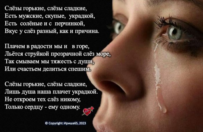 плакатьбеззвучно ведает,Бабьи, дЕвичьи и непокорные,хрустальные,Неожиданные из невольного...Проливаются слёзы напрасные.Различаются резервуарами.Невозможно все слёзы