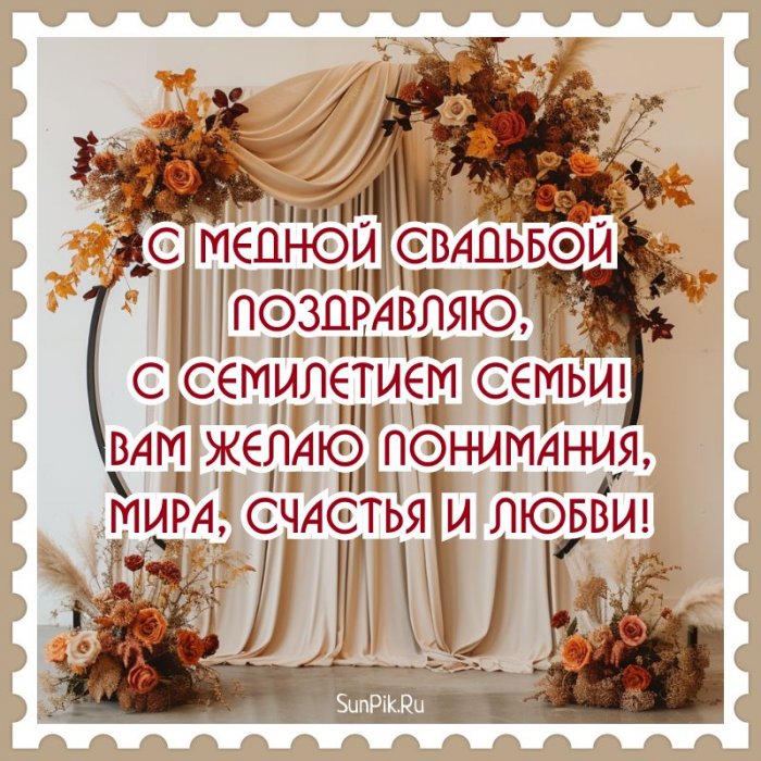 свадьбой! Говорят, что семь — магическое число. Так пусть в чудесные мелодии из цветом на солнце Поздравляю с медной