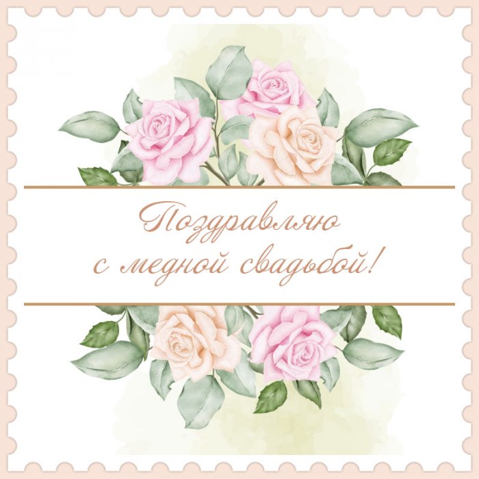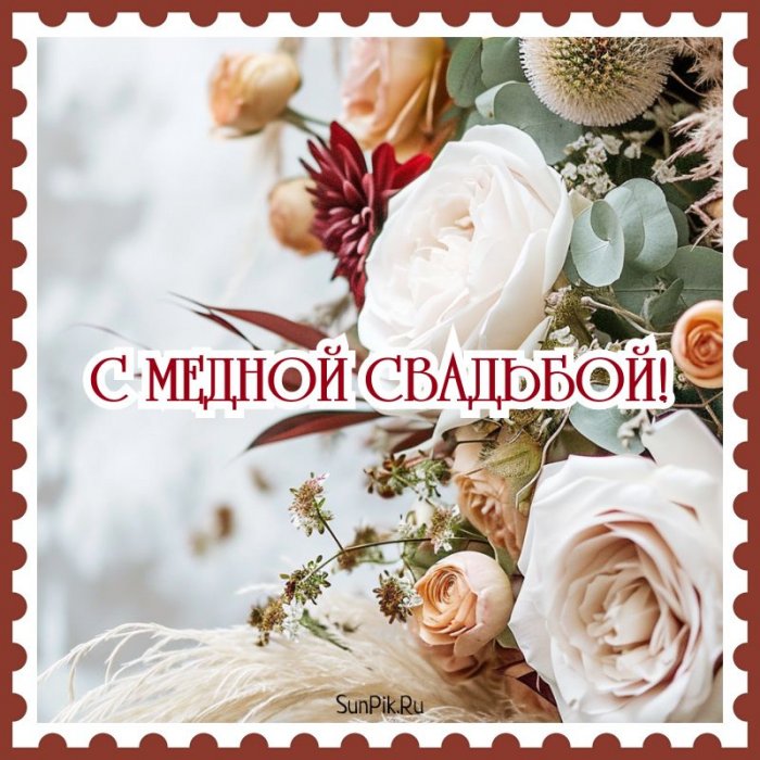 Открытка шерстяная свадьба.С годовщиной свадьбы свадьбы 7 лет Красивая открытка с с цветами.Открытка с поздравлением Медная свадьба фото