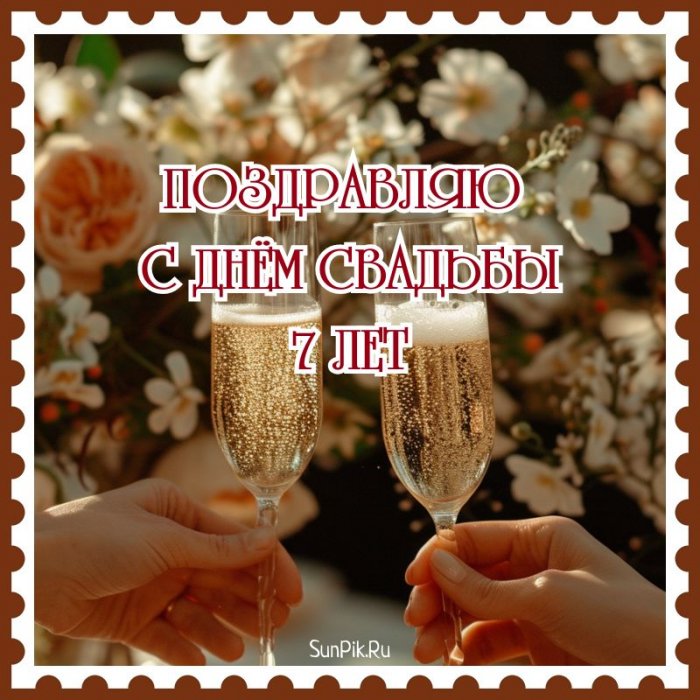 с бокалами шампанского.свадьбы 7 лет с пожеланиями своими