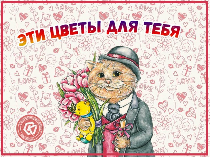 и появляющаяся надпись в красной ленте Я тебя люблюмилой кошечкой. Можно отправить парню!