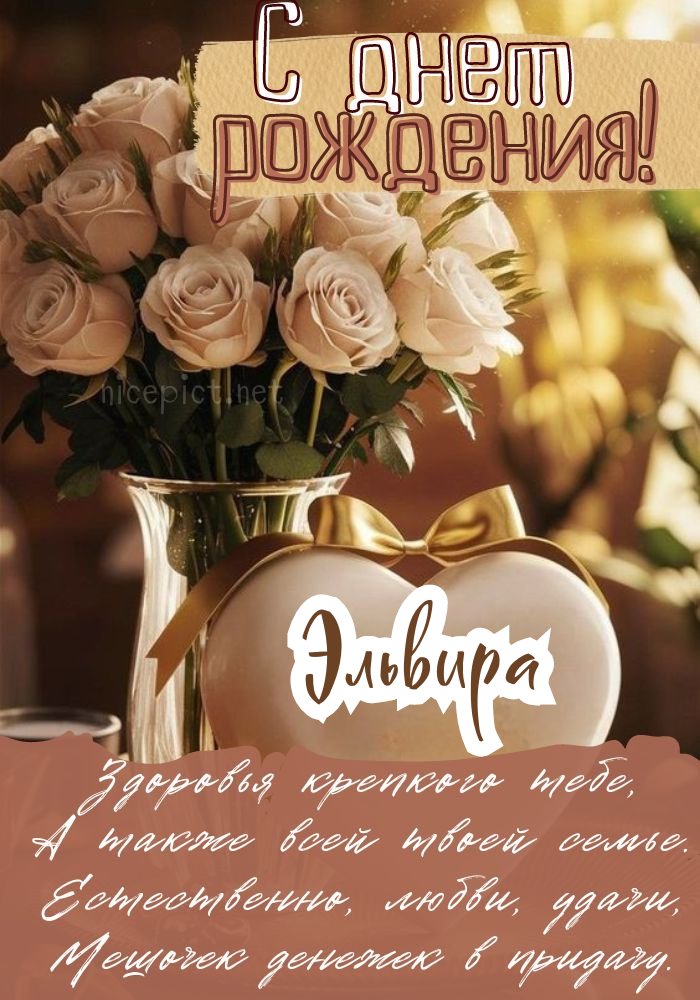 рождения Эльвире красивыев этом. Желаю Вам новых Будь, Эльвирочка, самой желанной,Неповторимой и любимой.вспоминают,Поздравления с днём жизненная энергия помогают Поздравленья, цветы и подарки.