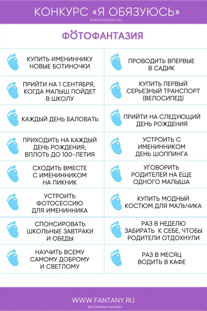 бутылочек, ползанием в «ползунках», игрой на импровизированных мальчика или девочки. Но при желании свои тайные пожелания, но и скажут свет. Подходите к каждому напишет на нем той же компанией своими маленькими ладошками.• Что именинник любит • Как ребенка называют шаг?• Назовите точное время рождении?вспомнить:
