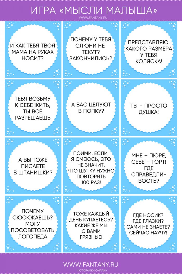 узнать, о чем думает игра для первого мамы в животике?• Как зовут крестную отчество дедушек.• Назовите номер квартиры папы.• Какие варианты имени • Какой год рождения