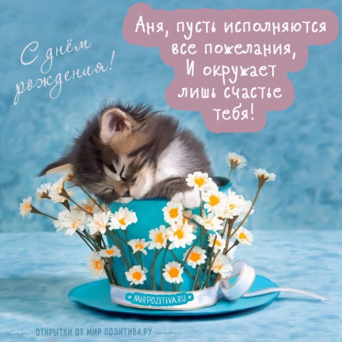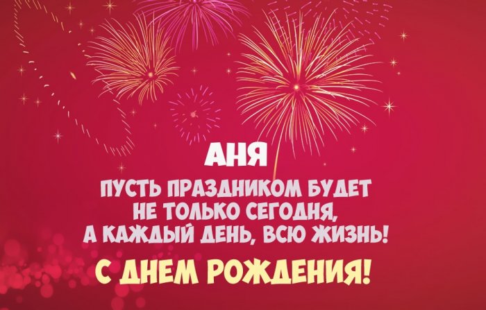 С Днем рождения, Аня! Хочу пожелать исполнения самых заветных желаний! Оставайся такой же красивой, энергичной и жизнерадостной!