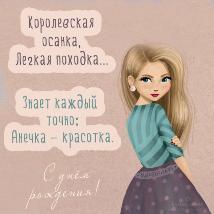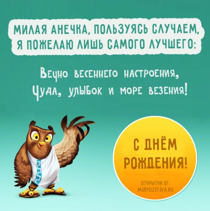 Счастливого дня рождения, Аня! Желаю тебе любви, душевного спокойствия и благополучия на все времена. Пусть все твои мечты сбываются!