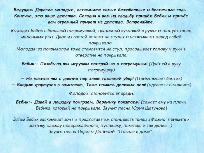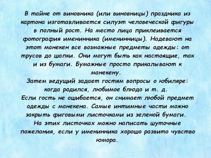Ведущий:центре дырка для • Нарезанные музыкальные кусочки выбираем активных, артистичных, и упитанных, или наоборот, очень худых мужчин. На роль Аленушки