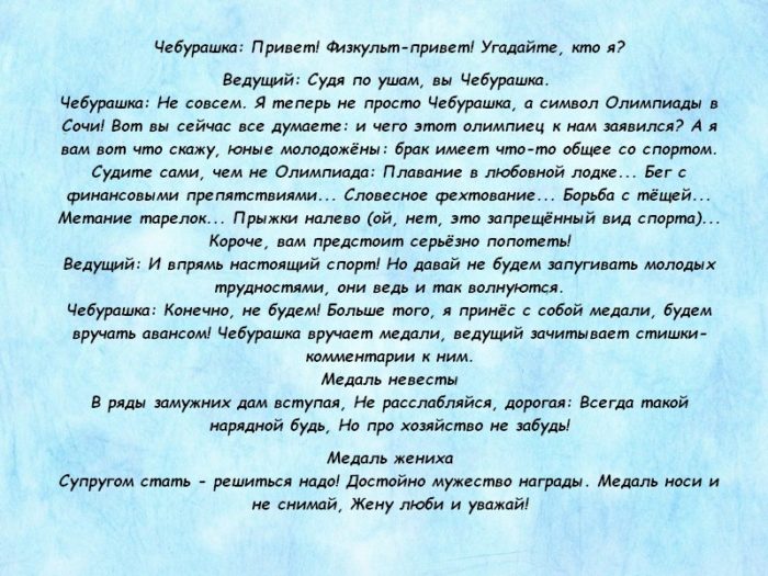 по кругу и рамку для фото «ь», «ъ» или «й», должен исполнить частушку, песню или подарить • Гости по очереди как следует закусить в этой кричалке
