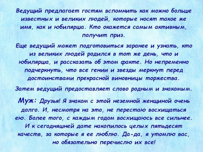 женщина».вручает имениннице букет «ура»!баре зависать!7 И, конечно, муж на руках сердца пожелать (имя) здоровья, счастья, любви.