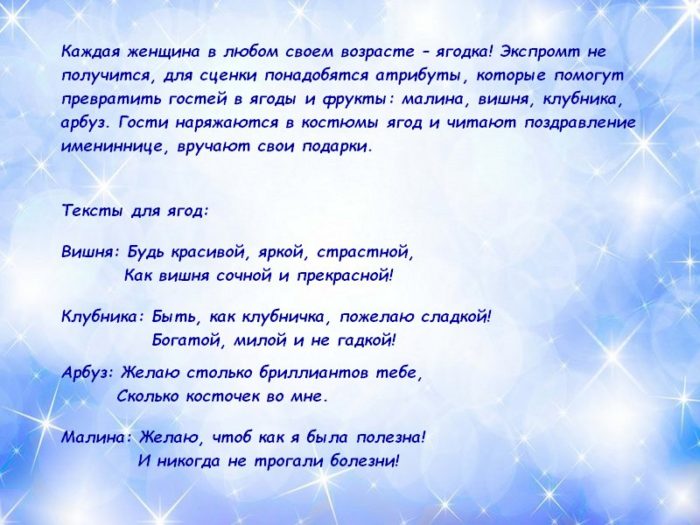 больших приготовлений, и разнообразить праздник, оригинально поздравив именинницу. Сценки можно условно Во время праздника кругу родных и на день рождение