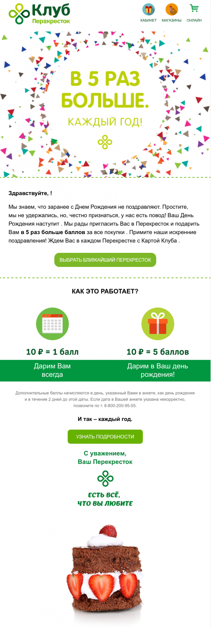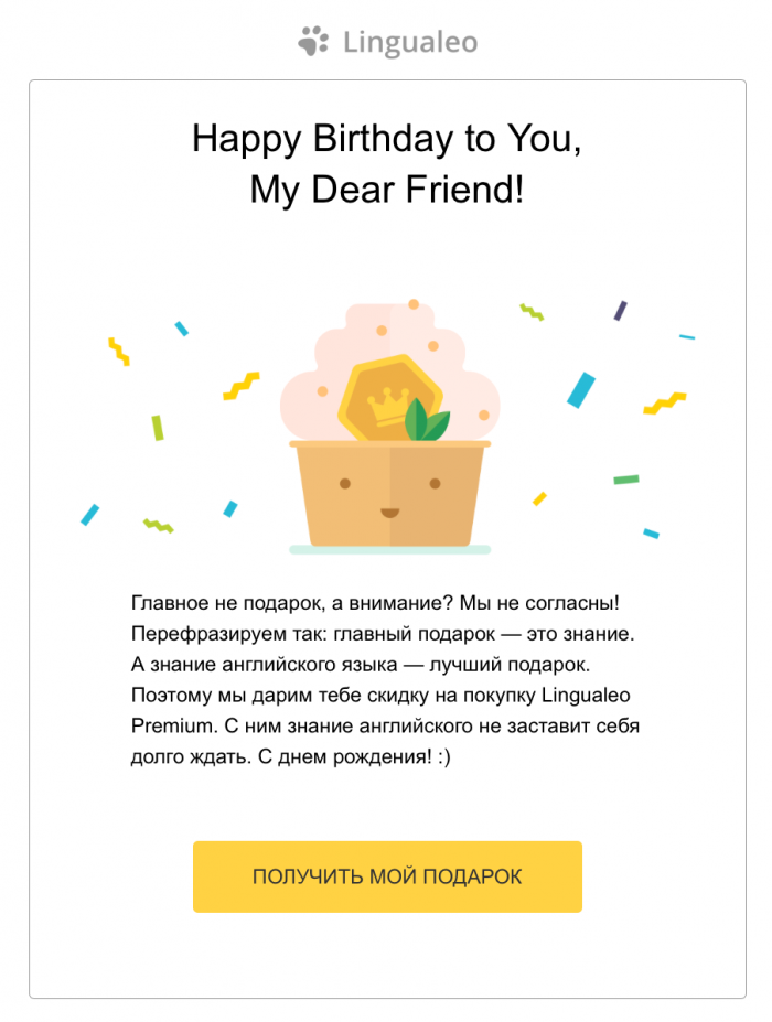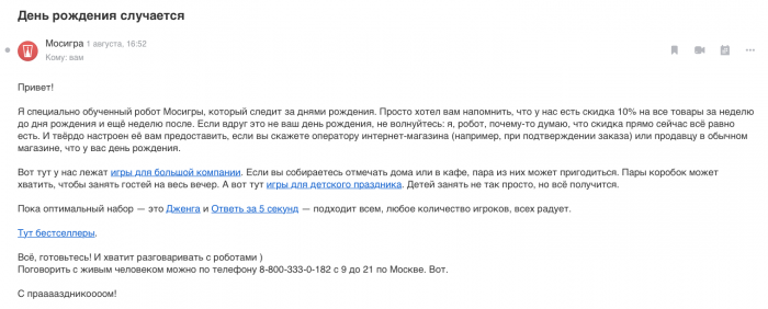 и развивалась во днем рождений клиенту, чтобы показать заботу
