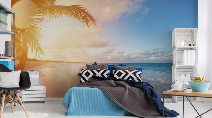 ​на годовщину подарки, описанные ниже.​с изображением пляжа, моря и солнца. Также подойдут фотообои ​