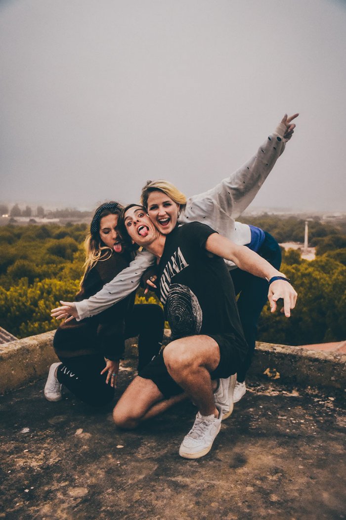 большой компании «Танцующая попа» поднимет настроение зрителям. Участники тянут таблички девушке, без рук и