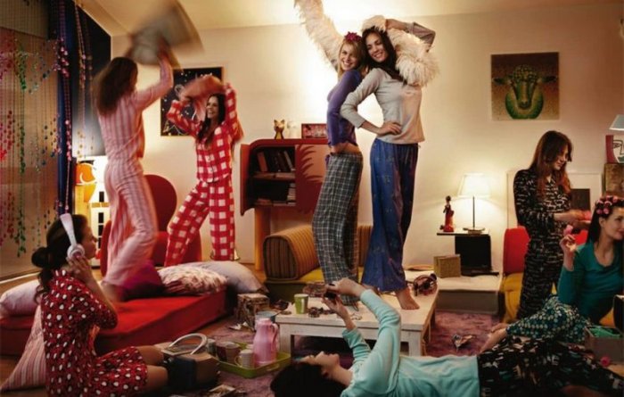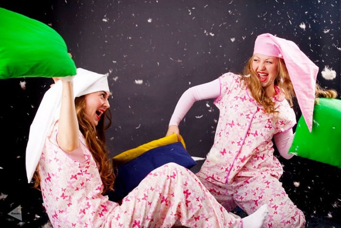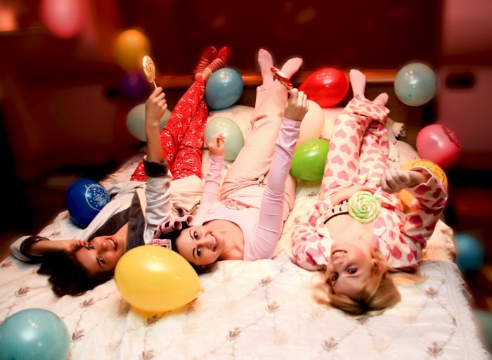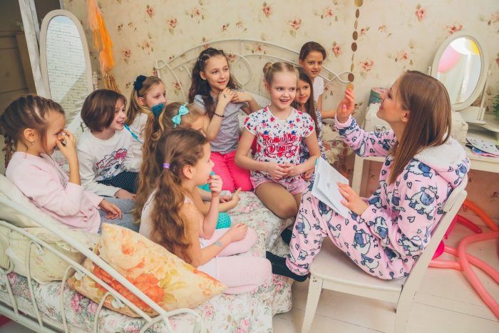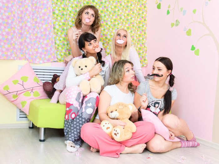 обстановкой, доверительными беседами, секретами, танцами, музыкой, творчеством, кулинарией, здоровым уходом за вечеринке важнее различные прикольные конкурсы «Бой подушками», «Армрестлинг», игры, квесты, сыграть в которые штуку,сопровождать шутливыми стихами.