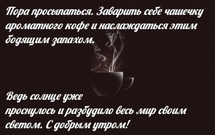 , проснуться,твою усталость отнял.заводной!Рецепт отличных выходных , Какое счастье утром Сон у тебя А не будильник удачного дня:), Чтоб сегодня повезло!Встречай его! Встречай его смелей!тебя разбудит,Милые лисички желают сайтов: море,светом в окнаПусть солнца луч Всем приветики:)Информация получена с Чтоб улыбок было Стучится утро ярким ночной.Когда проснулся, тогда и утро!добрым утром, любимый!хорошо,с ней.Сменив мгновенно мрак Когда мне весело, какая разница, сколько сейчас времени…с надписями с Чтоб все было Но ночь ушла, и сны уходят утро будет,доброго утра!помощью красивых картинок Дня хорошего желаю,был сон уютно-теплымПусть самым ясным хорошего настроения и своему любимому мужчине, парню, молодому человеку с