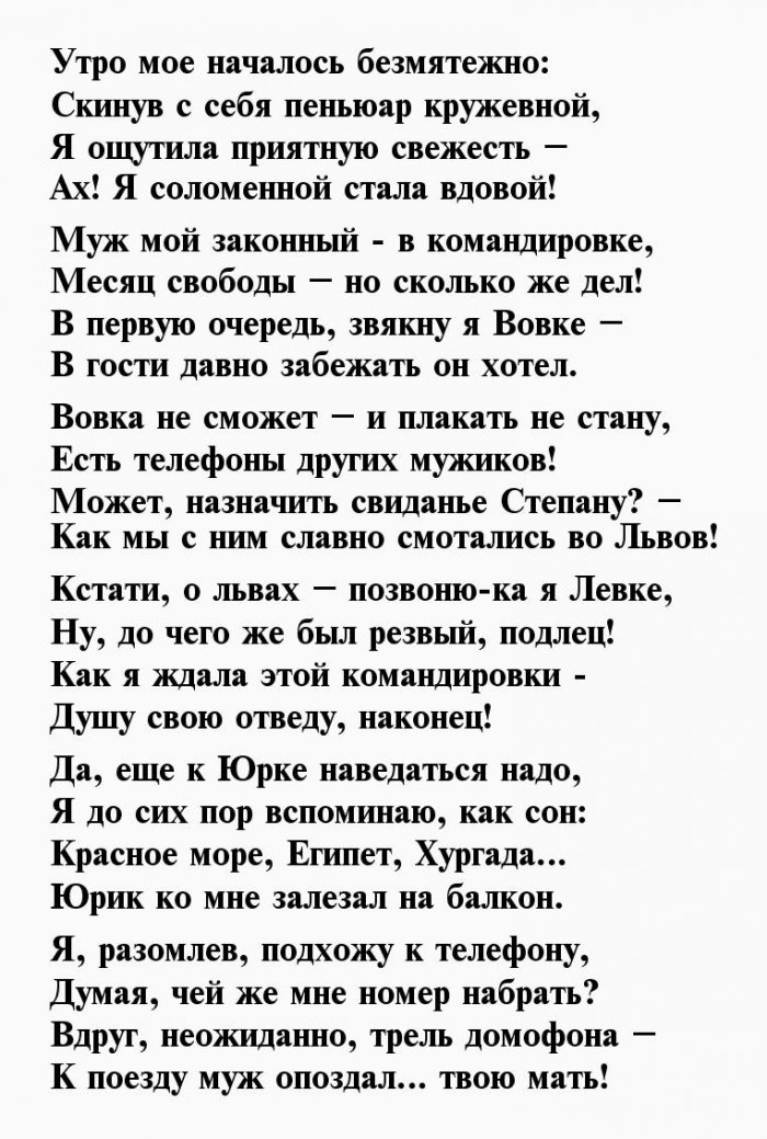Но тему тонкую, женитьбыКороче - тискал, что достал