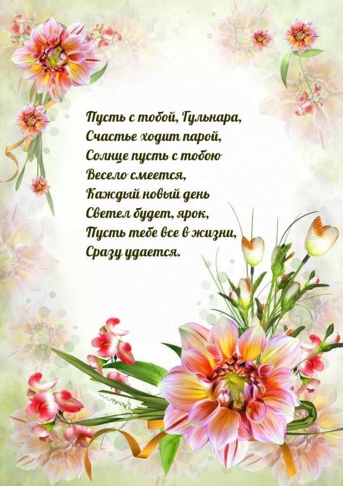 Поздравляю я тебя, Гульнара,В сердце вдруг