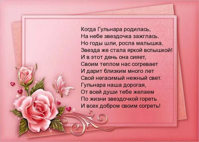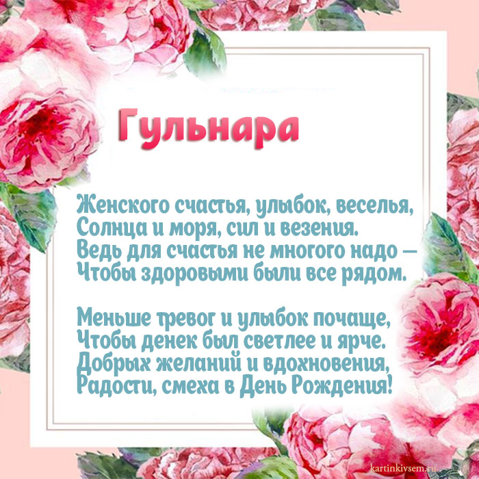 пожеланиями «С Днем рождения, Гуля» представлены в большом нескольким именам: Гульфия, Гульнара, Гульмира. В торговых точках
