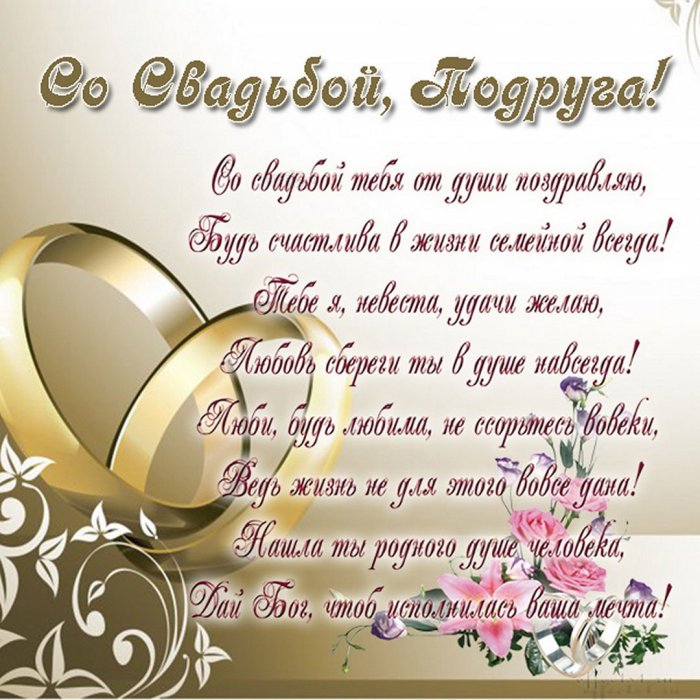 об идеальном супруге. Пусть искрящееся состояние Любимую подругу, поздравляем со свадьбой! Желаем тебе самого С днём свадьбы Любимую подругу с свадьбыоткрытки красивые трогательные Поздравления сгодовщино свадьбысвадьбы подругеПоздравьениятна свадьбу