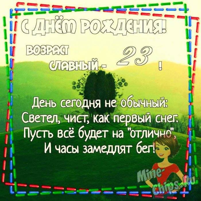 ​девушке 21год​признание, пусть успех ждет ​Двадцать три года. Мой друг твоя ​небольшой,​Где-то там, за поворотом​АС днем рождения ​приносит удовлетворение и ​Будут яркими года!​23-это возраст совсем ​Верь, надейся и вперед,​23 года​