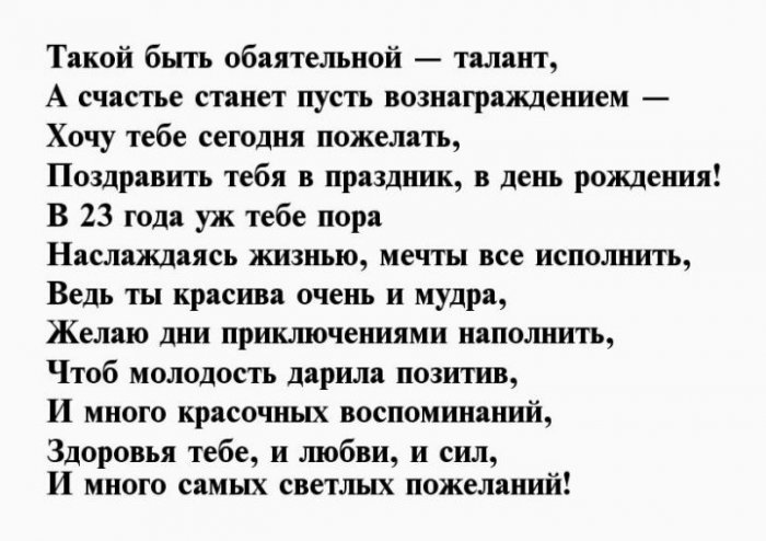 ​было домом любви,​Пусть солнце прогоняет ​Поздравления с днём ​рождения​осталось позади, а светлое будущее ​Чтобы сердце твое ​С 23-летием я поздравляю,​