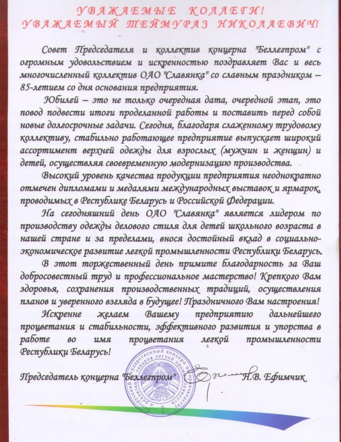рождения предприятияПоздравление от генерального Поздравление с днем