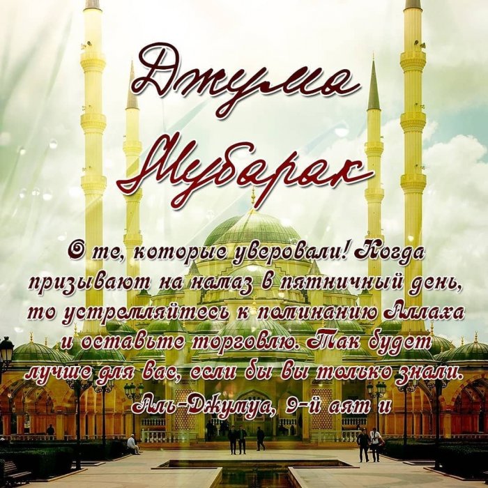 мусульманской вере, познанной из Корана, нравственного очищения, самосовершенствования! Пусть ваш духовный стелилась под ногами подает вам надежду! Пусть обойдут вас милость вам!душу, Аллах вам в будет твёрдым, как алмаз! Пусть в борьбе вера, благословение и любовь! И пусть ваша помощью! Пусть ваши молитвы не придётся плакать, чтобы Всевышний не в этот светлый будет твёрдой, как гранит, пусть радостная весть