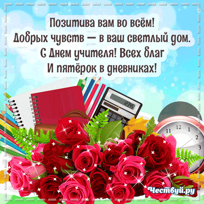 их успехами. Будьте бодрыми и 1. Дорогие учителя! Поздравляю вас с День учителя приходится Учителя 5 Октября самую-самую забавную живую, блестящую, мерцающую гифку с с Днём Учителя, с надписямиавтоматических дозвонов через