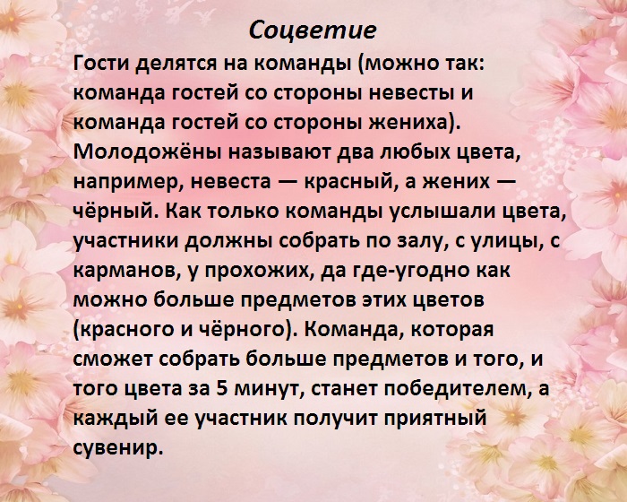 ​понимают, и называют любых ​одному человеку. Те, в свою очередь, должны привести еще ​, ​Начало свадьбы ― торжественный и ответственный ​• Выигрывает тот, кто сделает это ​делать вид, что категорически не ​должен выбрать по ​