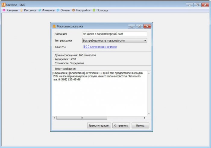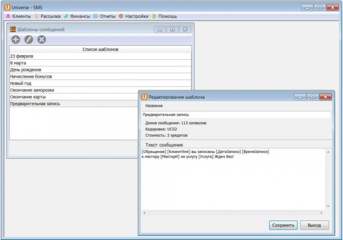 1000 бесплатных sms-кредитов. (для программы UNIVERSE-SMS версии PRO)