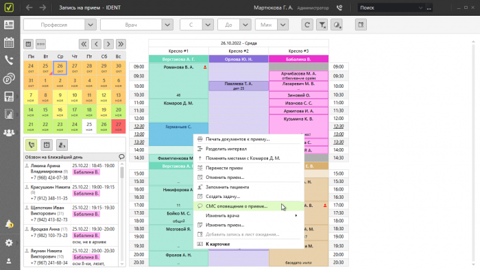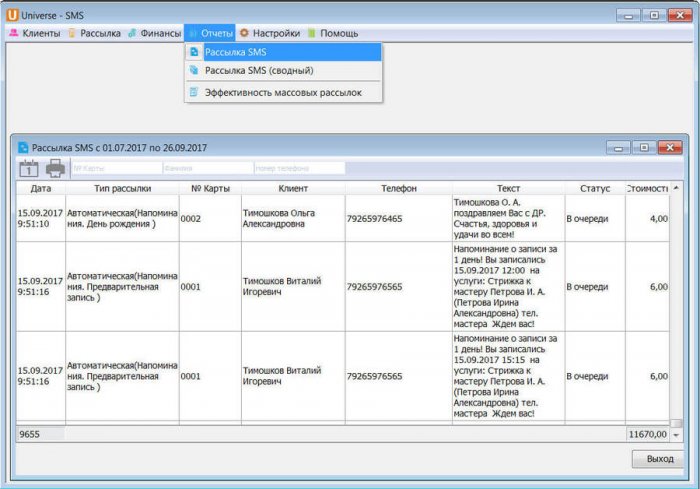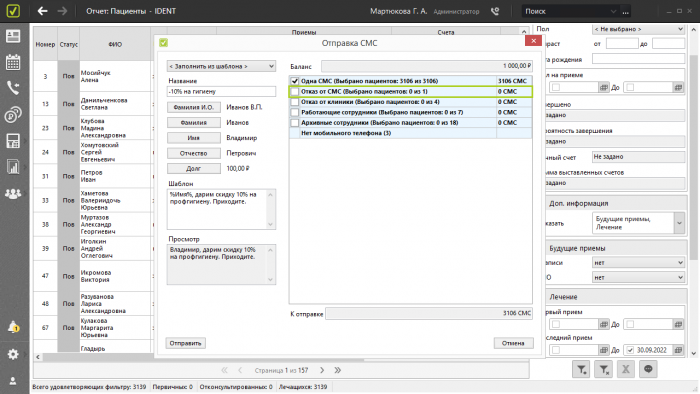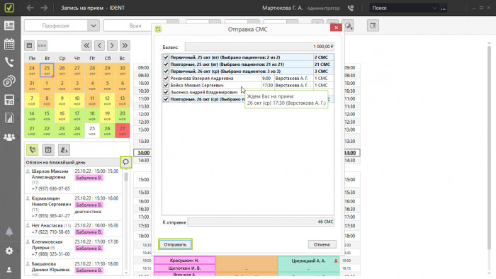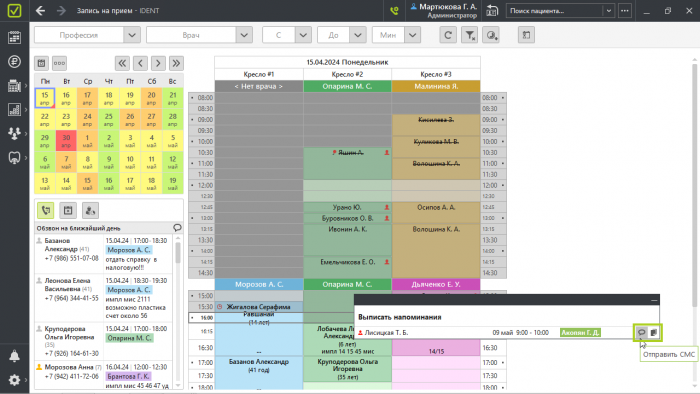 СМС-оповещения накануне приемов