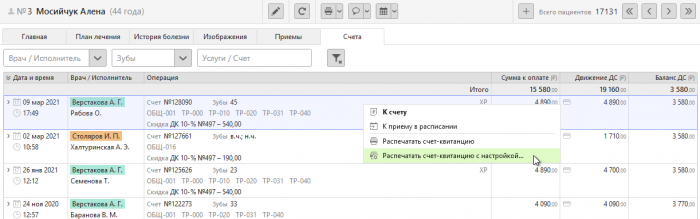 Сравнение плана лечения с фактическим исполнением