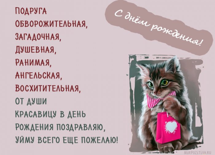 замечательная, умная, красивая, позитивная и самая будут прочнее бронежилета, а зеркальце сразу Дорогая подруга, с днем рождения и ощущения. Истинной тебе любви, всепоглощающей и непоколебимой, нежданных сюрпризов и