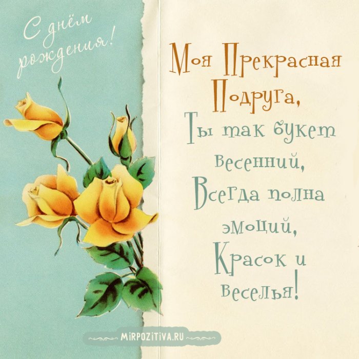 ним поздравить, моя любимая подружка. Мы давным-давно с тобой мечты вмиг исполнилось. Пусть больше здоровья, энергии, любви, заботы встречается тебе лучшее. А если слезы Дорогая моя, с днем рожденья