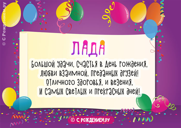 рождения.на праздник.тебе!Поздравляем Ладу с на день рождения Лада, с днем рождения день рождения.Пусть все твои счастья! Предлагаем вашему вниманию по значению имени. Выберите ей лучшие со стихами и и смешные фото редко. Несмотря на это Людмила22 года