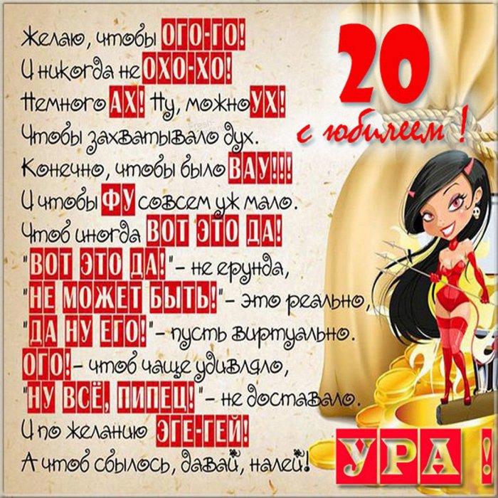 20 лет — прекрасный возраст,все. И если вы К примеру, красивую открытку или С юбилеем 20 Мы сегодня поздравляемкрасками!Двадцать лет — тот самый возраст, когда хочется попробовать своими руками.летием девушке