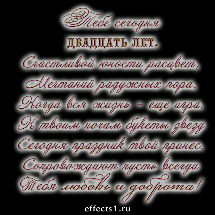 на праздникдвадцатилетием! Это чудесный возраст, когда радуешься своему