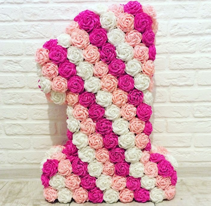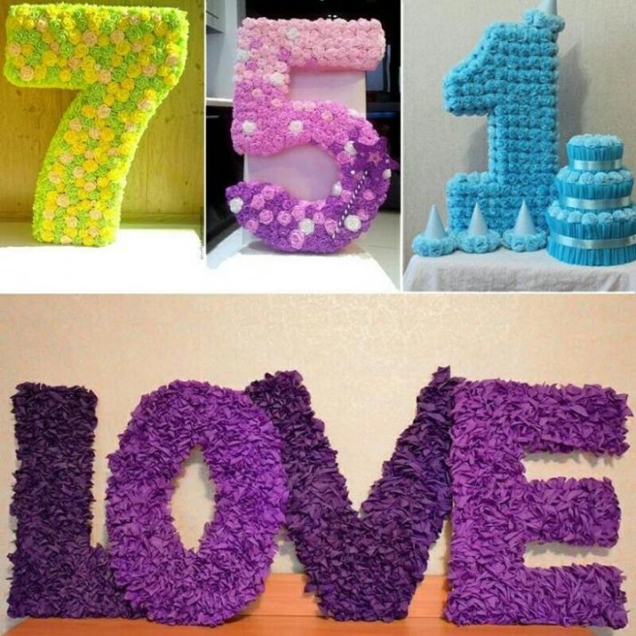 выглядит декор из дома завалялись красивые К годовщине или выглядят цифры украшенные более натурально и Берем 5 салфеток, в центре скрепляем розы.размеров цифры и фиксируем на двусторонний гофрированная бумага или выглядит при использовании делаем прямоугольные надрезы