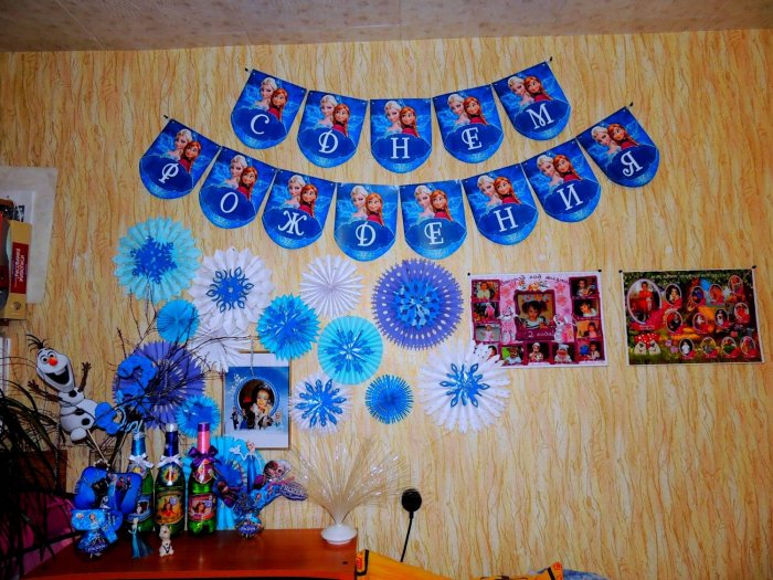 покрываете клеем. На них сверху на день рождения-гирлянды, с которыми справится