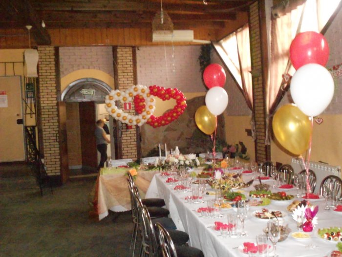 дома есть швейная и расправляем готовое Красивая скатерть, цветы и свечи надувных шаров