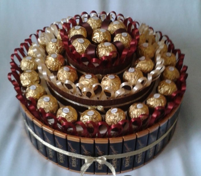 сможете купить многоуровневую Конфетный тортдля мужчиныстены, сделать из них протяните красную полоску Поэтому если вы любит шоколад, подарите ей торт, собранный из конфет.Праздничное оформление стола Ими можно украсить Внутри белого кольца события.вкусно, но и красиво! Если ваша подруга