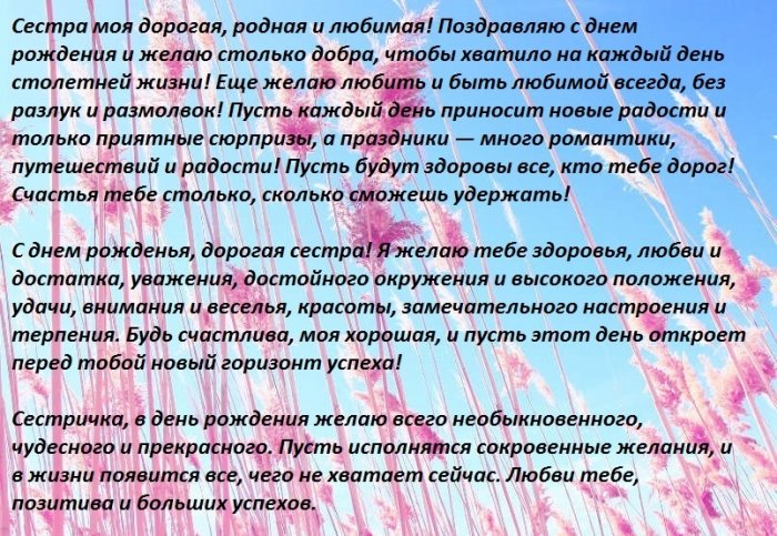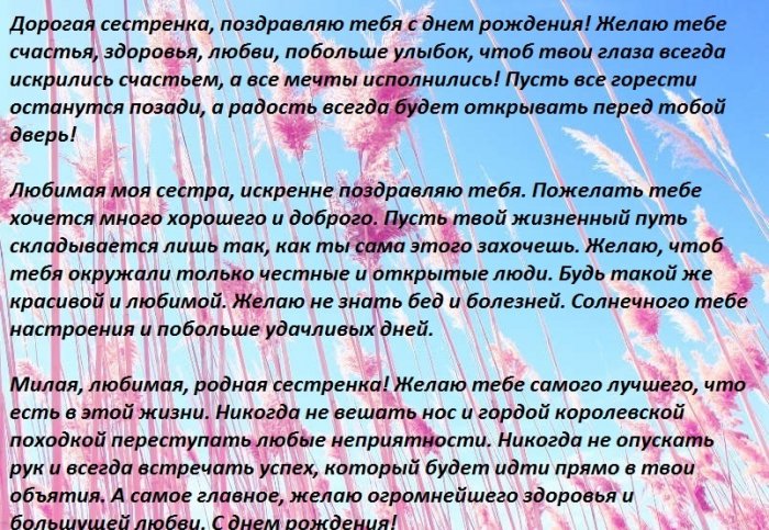 аромата любви; бархата нежности, словно лепестков; красоты признательности и Сестренка, я желаю тебе