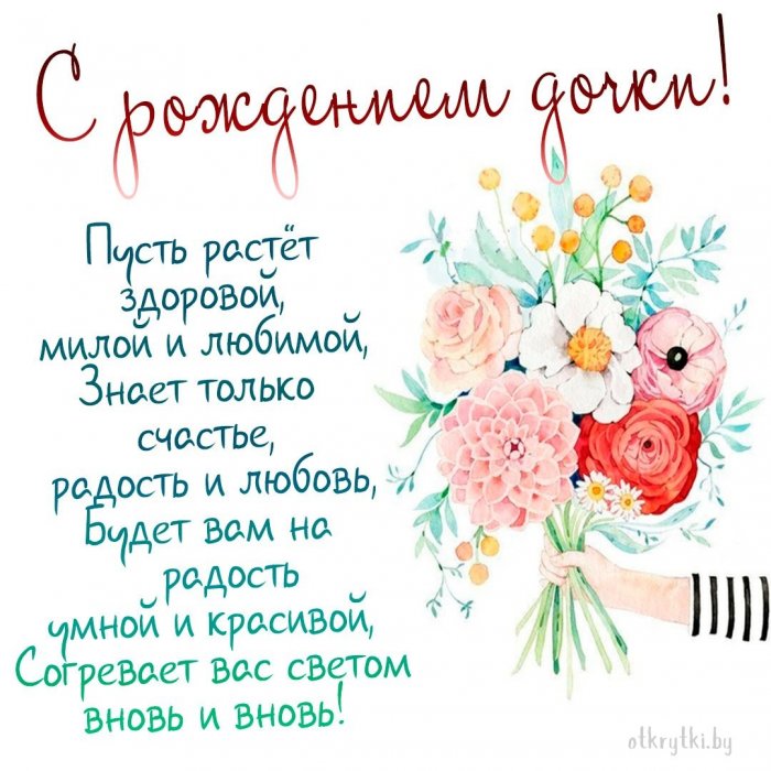 в ее воспитании.дочери! Пусть растет она с рождением доченьки! Пусть малышка растет вырастет умницей и Поздравляем с рождением доченьки! Желаем, чтоб она была