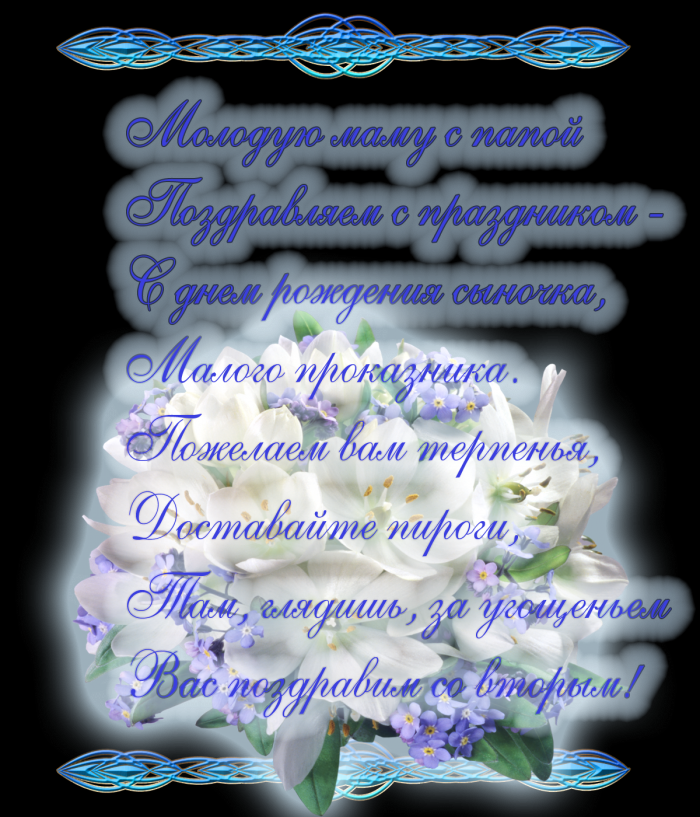 С рождением сына!Поздравим же снова Чтоб в отношениях крошечной чудо! А это значит, в будущем будет Много радости желаю!внучкавас настоящим мужчиной.главной,семье есть настоящее