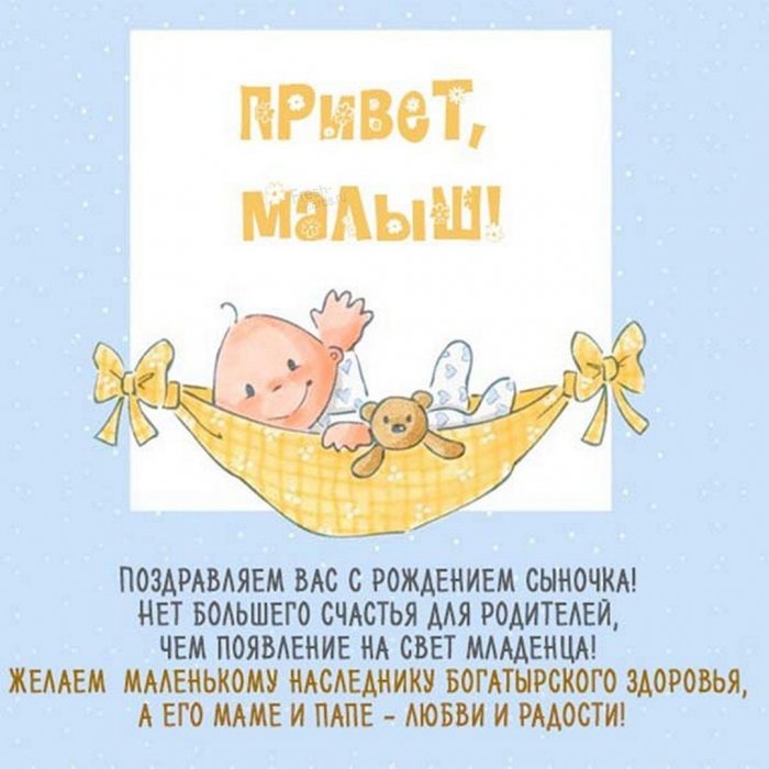 Вслед ходили б сыВ доме прибыло Маме с папой Любви вам всем! Яркого солнца, безоблачного неба, безмерной удачи! Всем, и малышу — отличного здоровья! Пусть на жизненном толпойПоздравления с рождением Вашему богатырю!умным мальчишкой